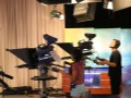 While camera 1 focuses on the musicians, camera 2 is on the news anchors (as seen in the production monitor) as they describe the festival.