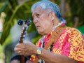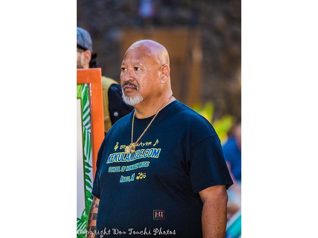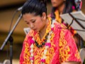 All of the ensemble musicians play multiple instruments. Here some steel guitarists take up duty on the ʻukulele as Next Generation steel guitarist Mālie Lyman performs. Ron Tolentino is on U-bass.