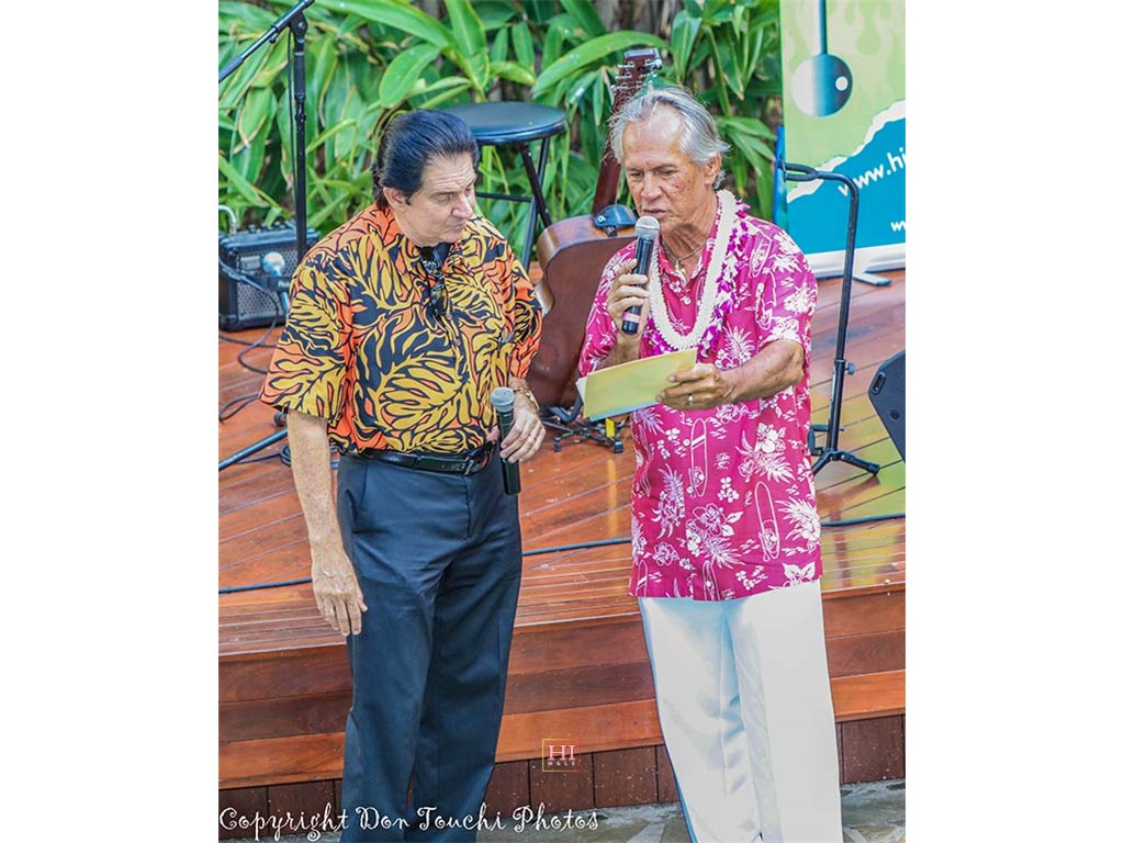 Festival co-emcees Harry B. Soria, Jr., and Kimo Kahoano.