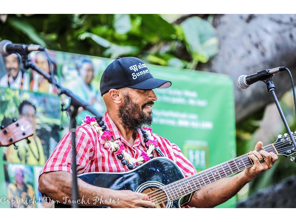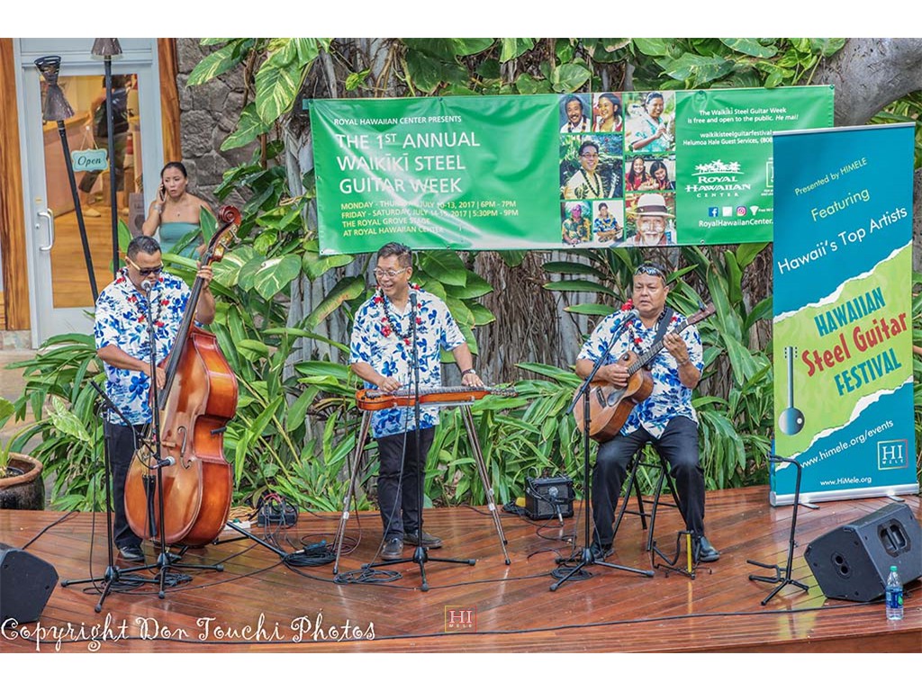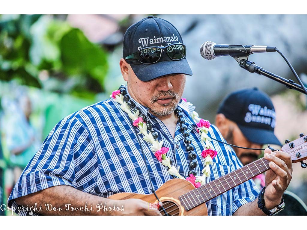 Photos of Saturday ho'olaule'a performances by featured steel guitarists Alan Akaka and The Islanders, Paul Kim and the Waimanalo Sunset Band, Eddie Palama, The Bobby Ingano Trio, and Greg Sardinha and Po'okela.
