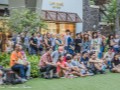 Guests sat on the lawn and conveniently-located landscape rocks.