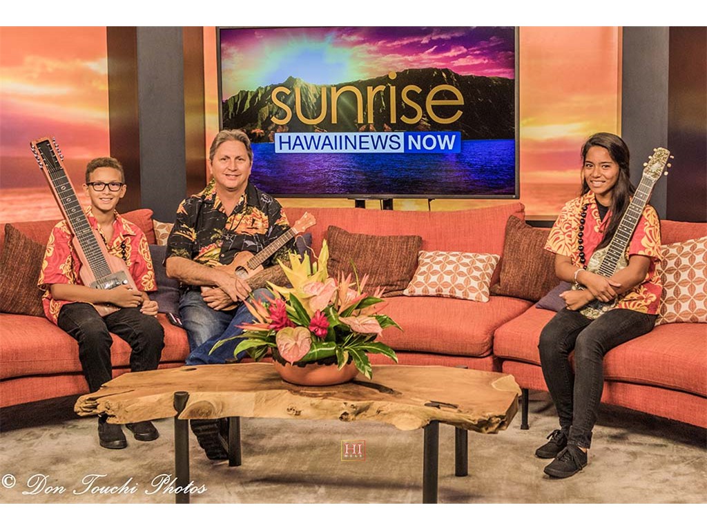 Photos of the live performance on Hawaii News Now Sunrise by Next Generation steel guitarists and musicians.