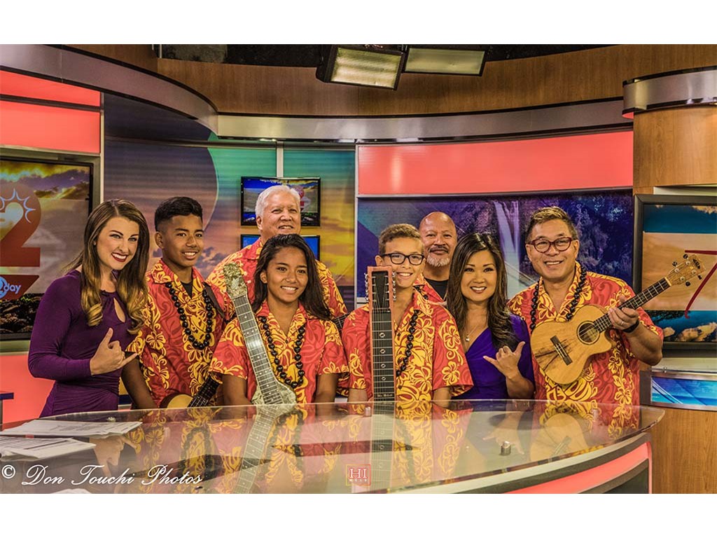 Alan Akaka and the Next Generation steel guitarists and musicians on the Living808 set.