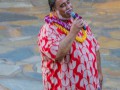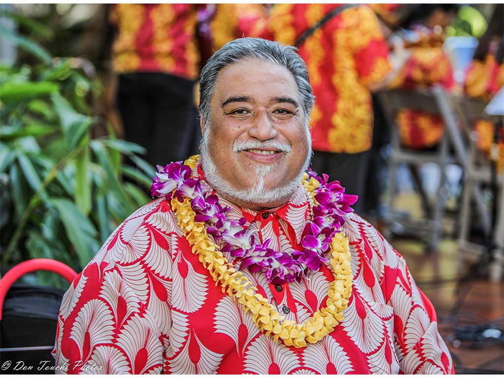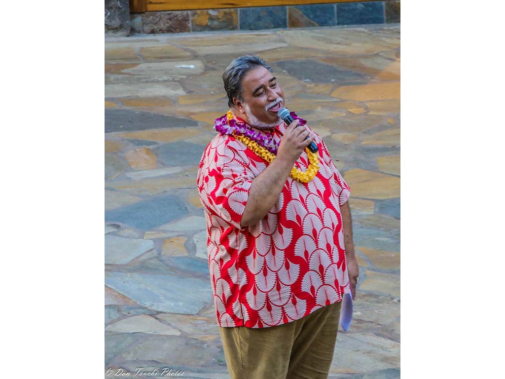 Emcee Hau'oli Akaka opened the program with a Hawaiian chant and blessing.