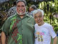 • Emcee Hau‘oli Akaka with Kiyoshi ''ʻLion'' Kobayashi.
