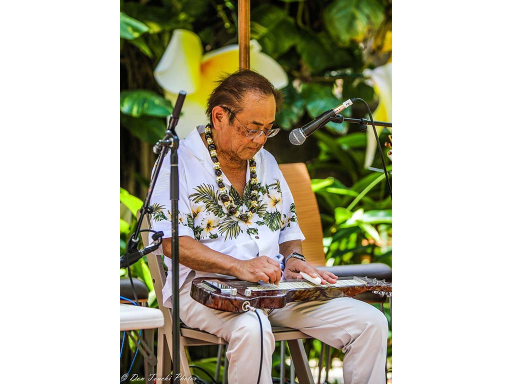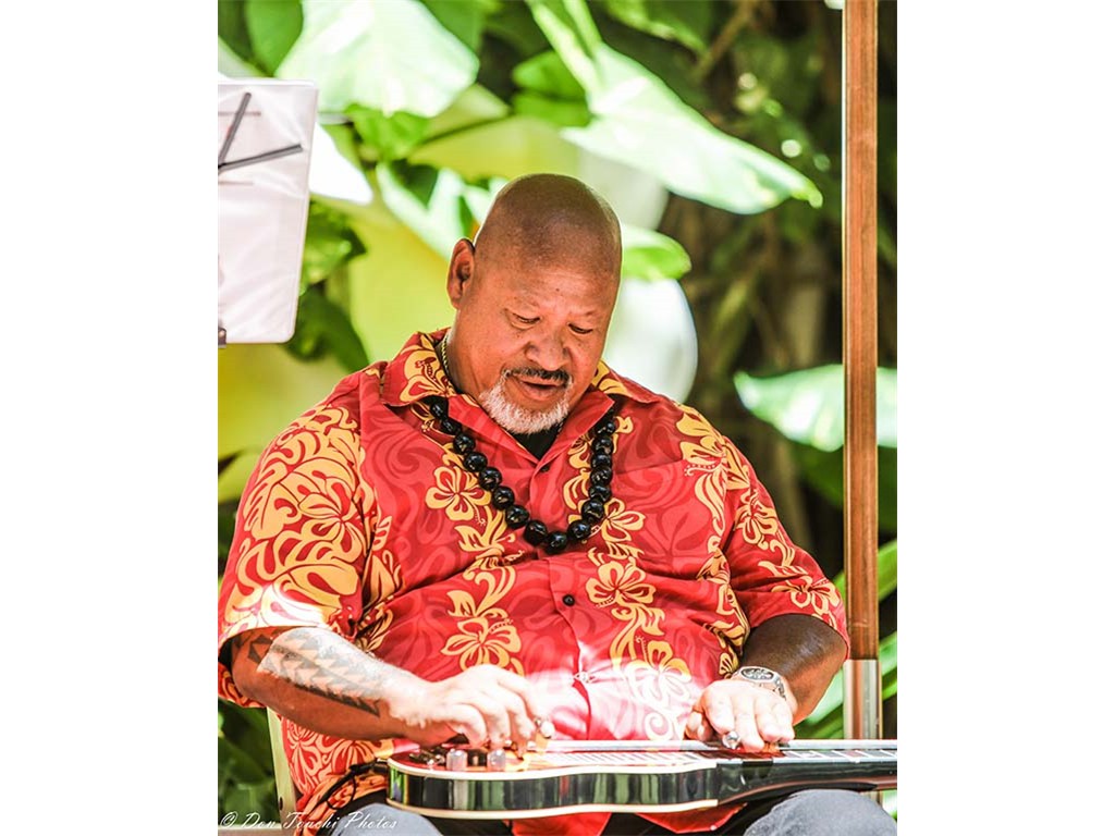 • Ke Kula Mele Hawaiʻi Makua steel guitarist Larry Holu.