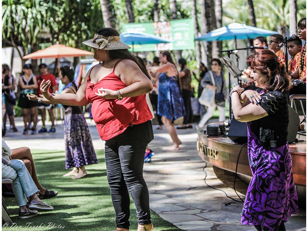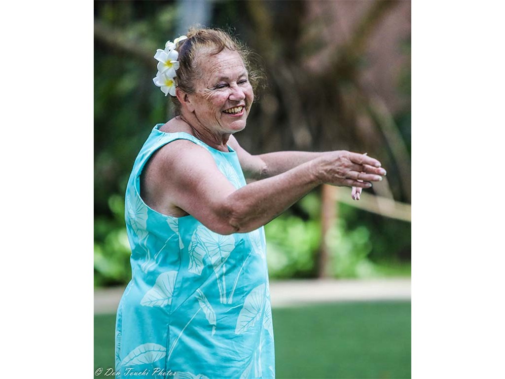 • Audience members contributed hula to the presentation. This dancer chose to dance in front of Helumoa Hale.