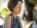 • The Lion Lady Steel Guitar Ensemble announcer Haruko Ozeki.