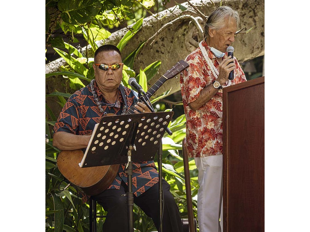 Guitarist Kaipo Asing and emcee Kimo Kahoano.