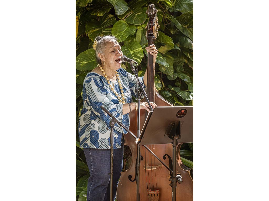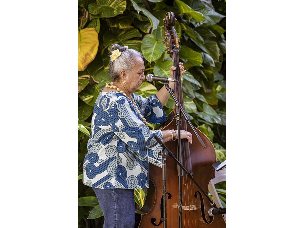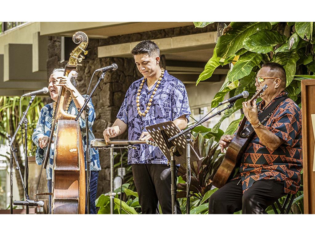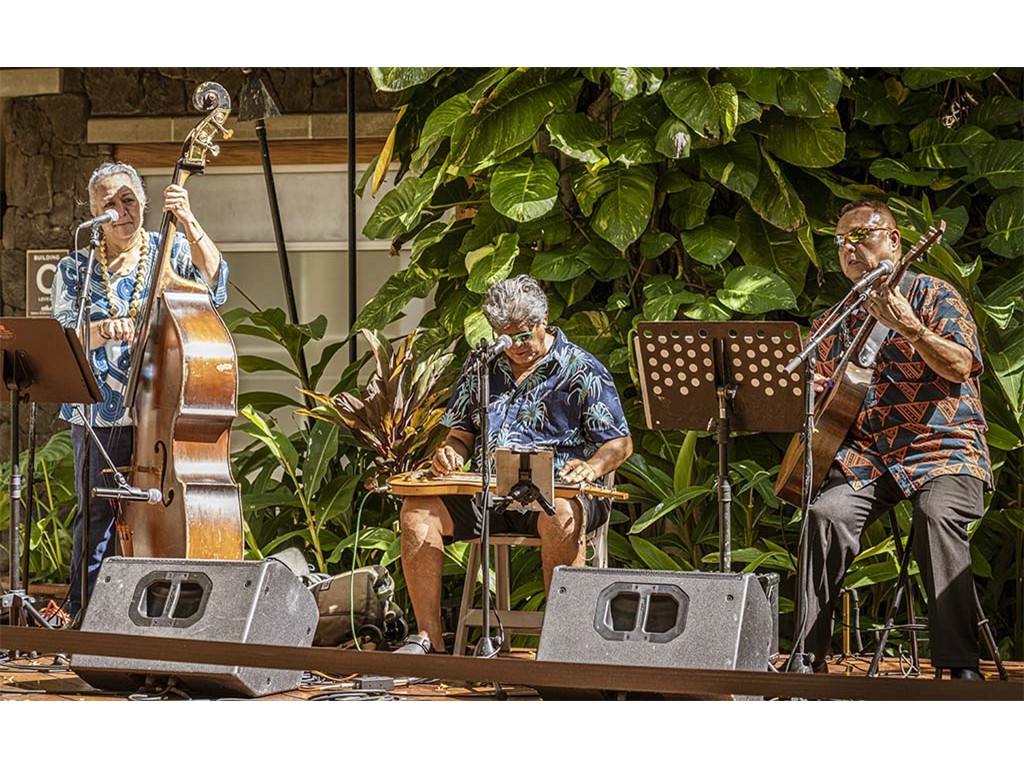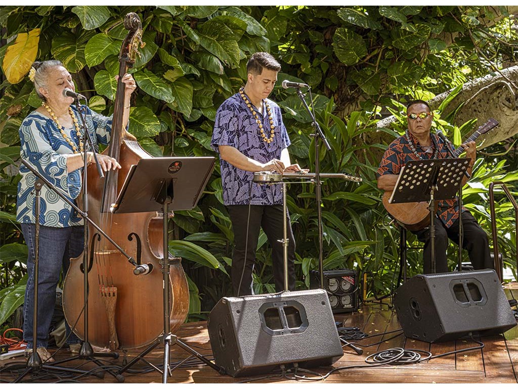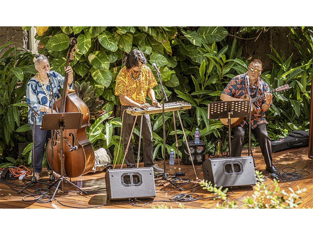 Featured steel guitarist Kapono Lopes with Helene Woodward and Kaipo Asing.