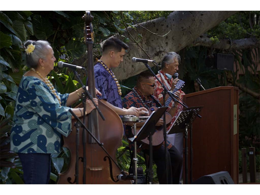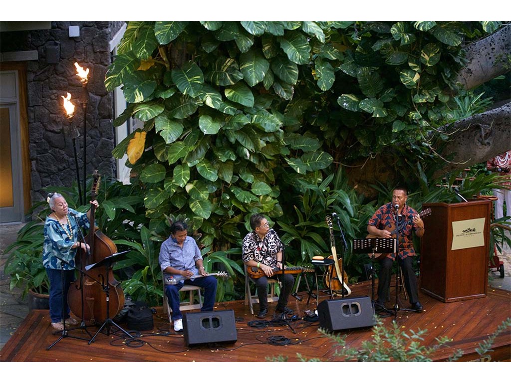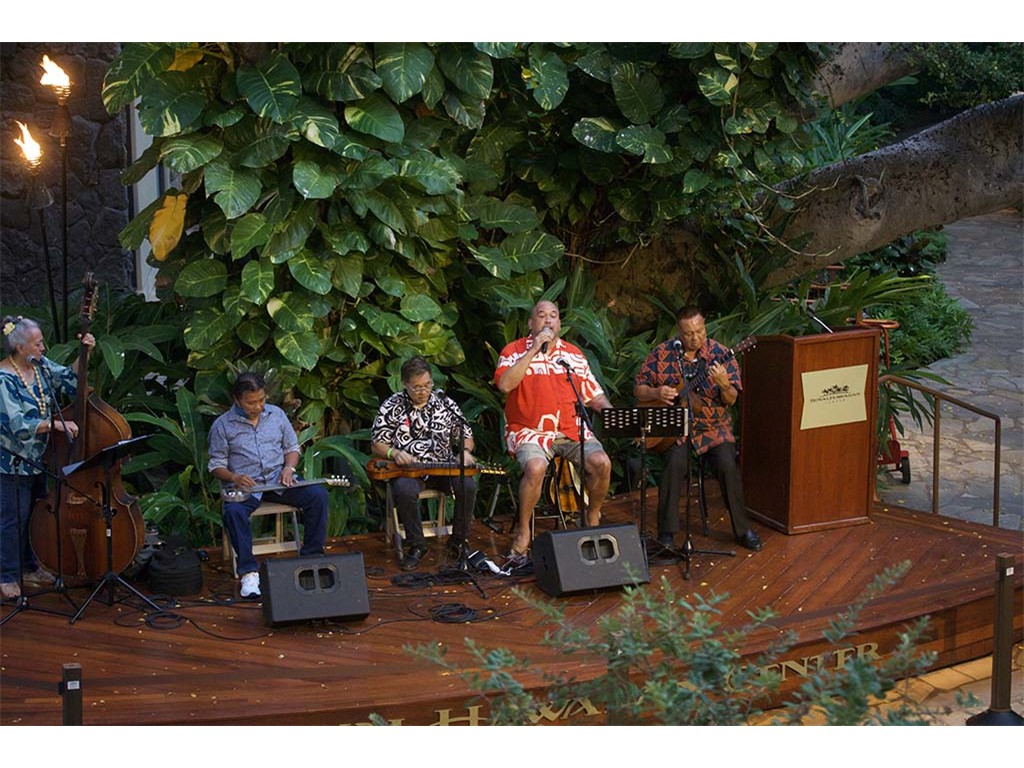 Helene Woodward, featured steel guitar player Kapono Lopes, Kaipo Asing, and emcee Kimo Kahoano.