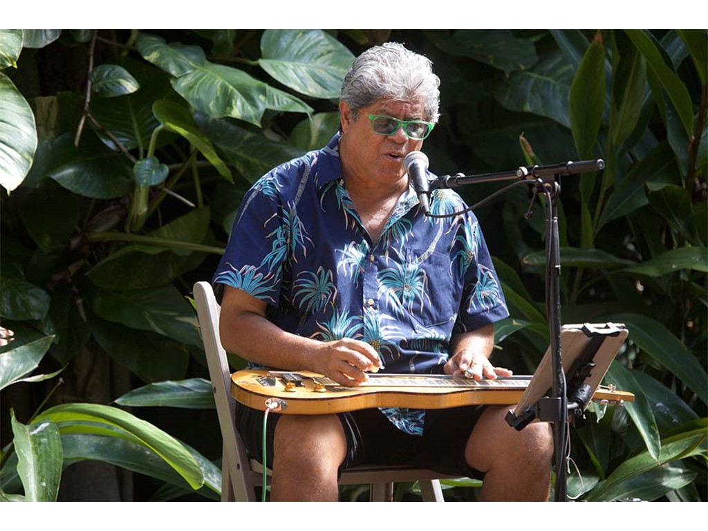 Steel guitar jam session with steel guitarists Bobby Ingano and Alan Akaka. Helene and Kaipo provided accompaniment.