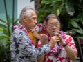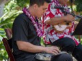 • Greg Sardinha and Poʻokela with a view of festival guests in the Royal Grove.