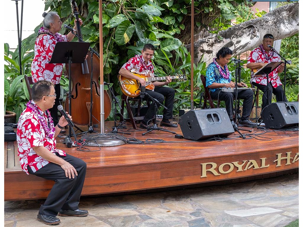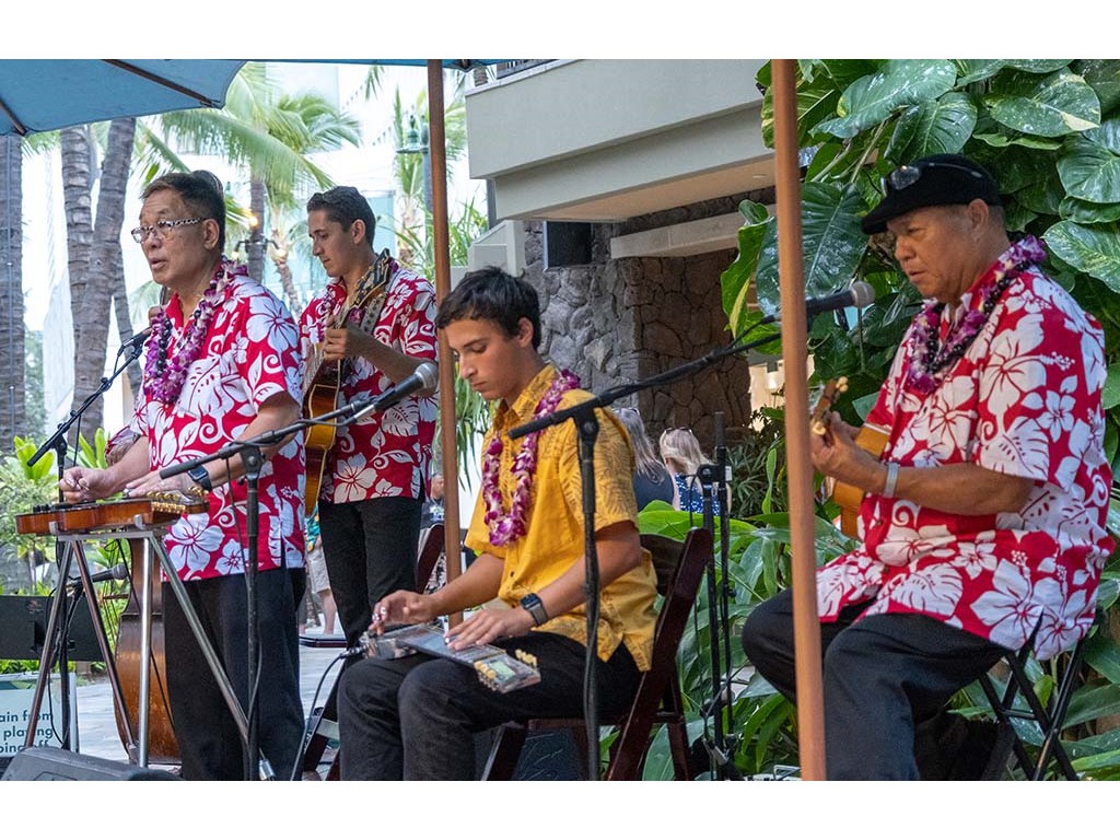Alan closes out the 4th Annual Waikīkī Steel Guitar Week and the 12th Annual Waikīkī Steel Guitar Festival. Also in picture: Helene Woodward, Joseph Zayac, Ethan Goore, and Kaipo Asing.