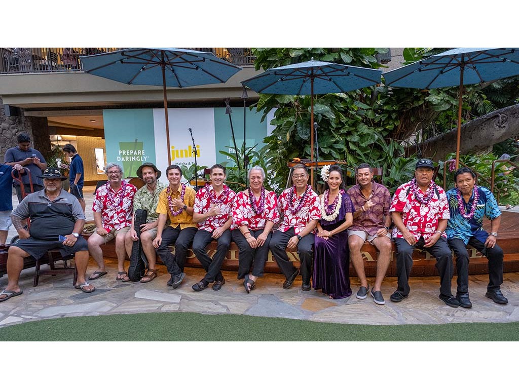 Some festival participants and staff from left: Larry Holu, Nate Goore, Al Greene, Jr., Ethan Goore, Joseph Zayac, Helene Woodward, Alan Akaka, Kapuanani Greene, Nic Neufeld, Kaipo Asing, and Bobby Ingano.