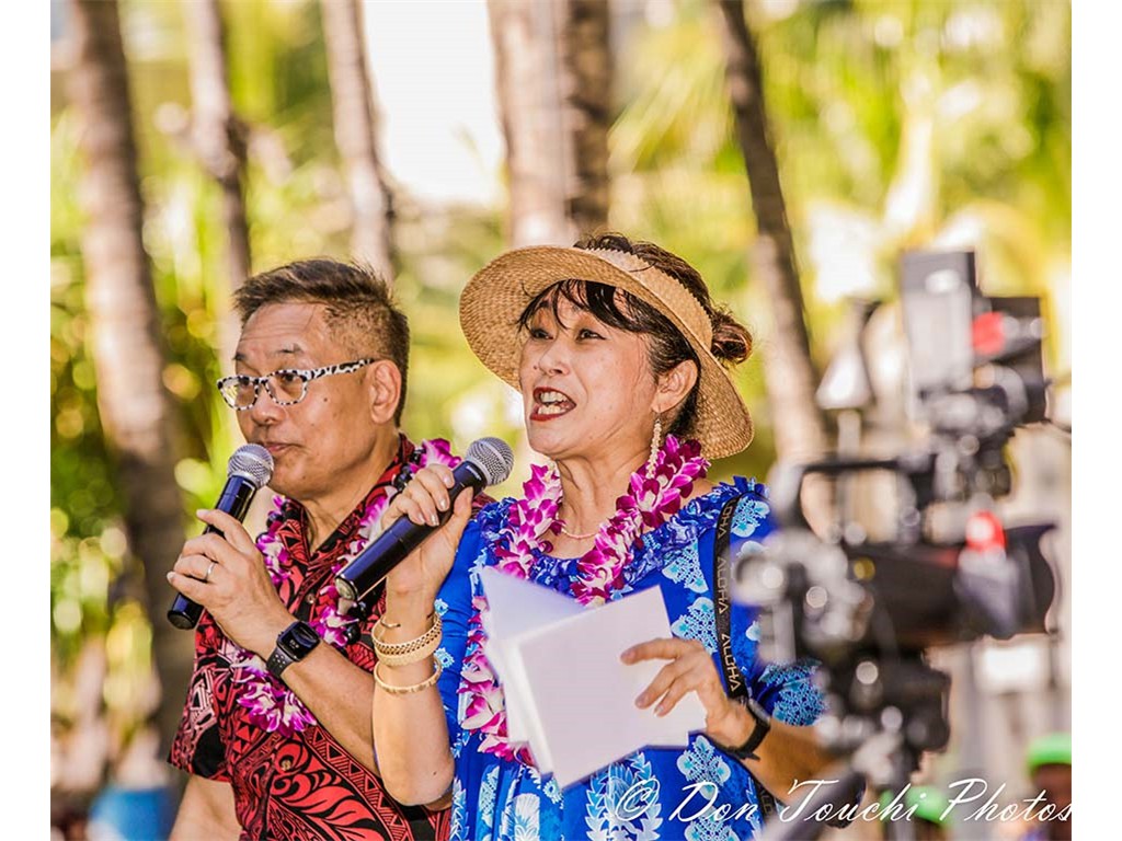 Alan Akaka and emcee Reiko Tokushige Rogers.