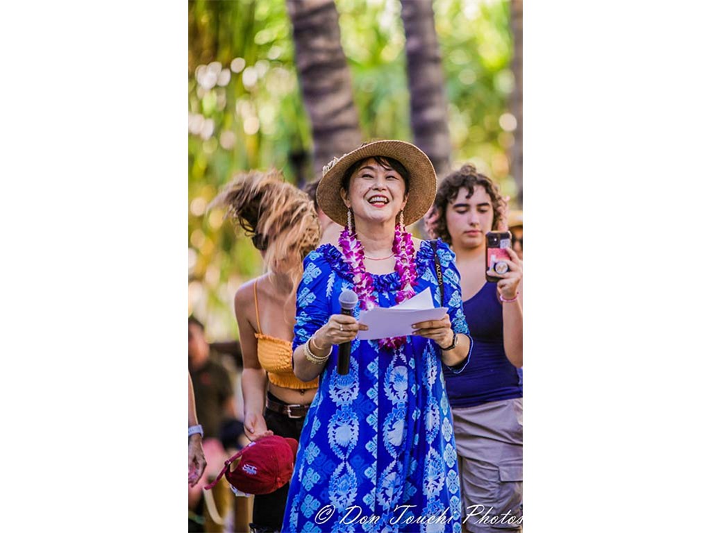 The 2nd Annual Japan-Hawaiian Steel Guitar Festival was held on Friday, July 14, 2023, with five steel guitarists and steel guitar ensembles from Japan performing. The festival was incorporated into the weeklong Waikīkī Steel Guitar Week. Emcee was Hawai‘i Japanese media personality Reiko Tokushige Rogers who provided announcements in both English and Japanese. The event was livestreamed and featured Noriko and Shuji Tomita, Paul Okubo, Shinichi and Kumiko Kakiuchi, Masami "Matt" Kobayashi, and Kiyoshi "Lion" Kobayashi.
