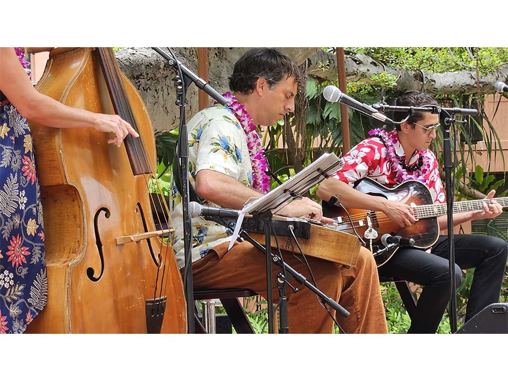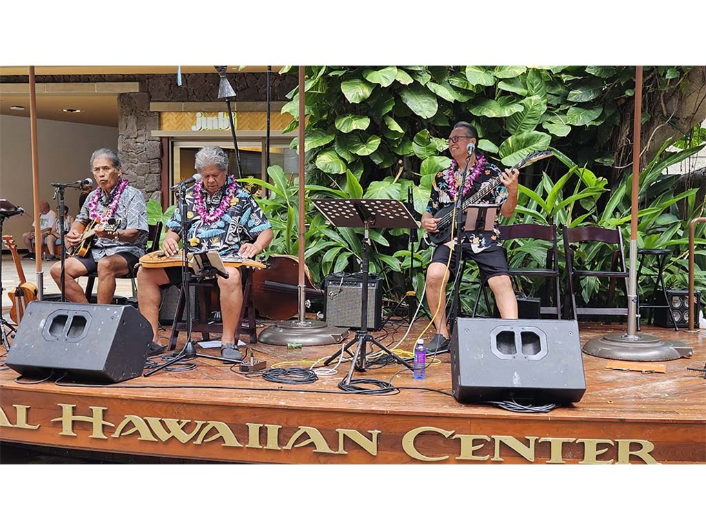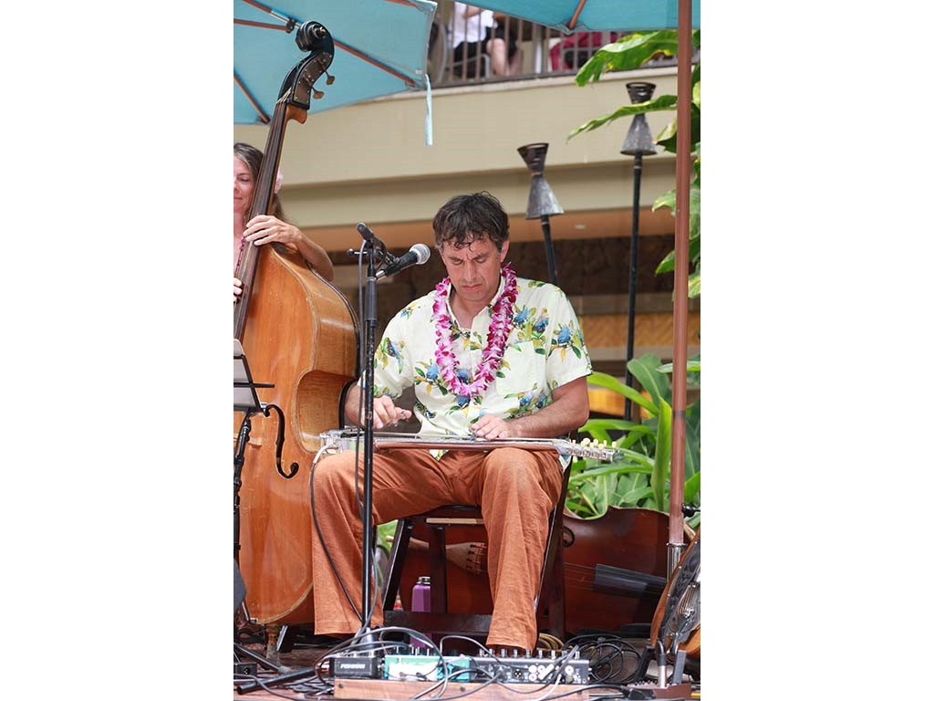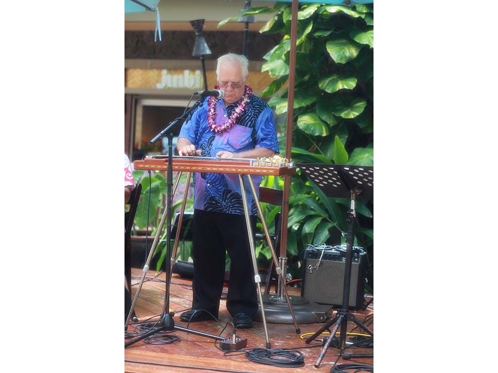 Featured steel guitarist Greg Sardinha with Dennis ʻʻBlaʻʻ Keohokālole and Kata Maduli.
