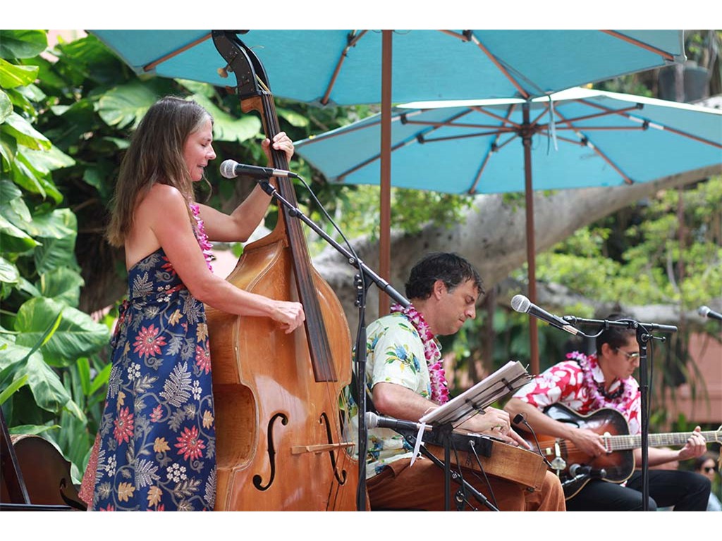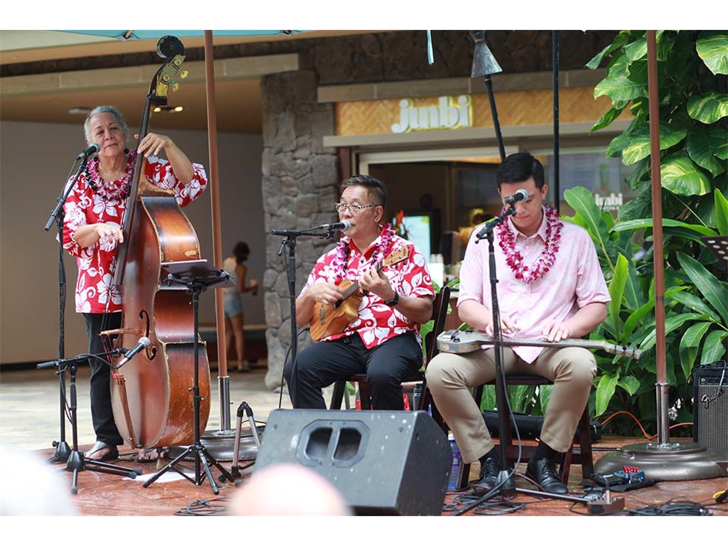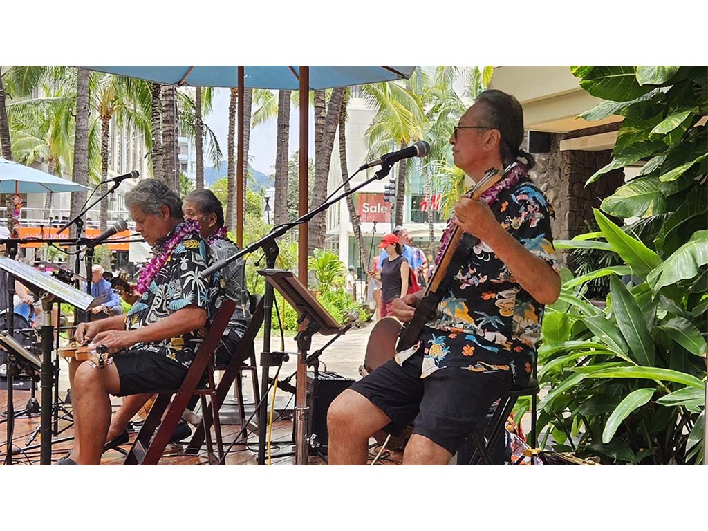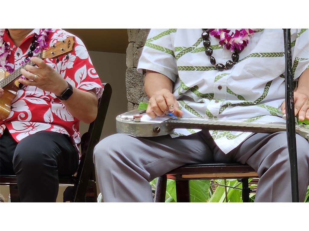 Featured steel guitarist Greg Sardinha with Dennis ʻʻBlaʻʻ Keohokālole and Kata Maduli.