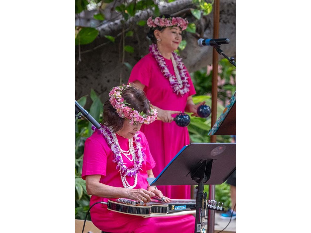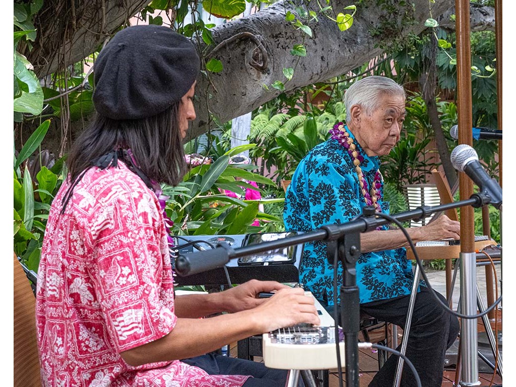 Alan Akaka with Masami Sato & Makana. Makama member Akiko Watanabe was not able to participate due to illness.Back to Gallery: 2024 Waikiki Steel Guitar Week