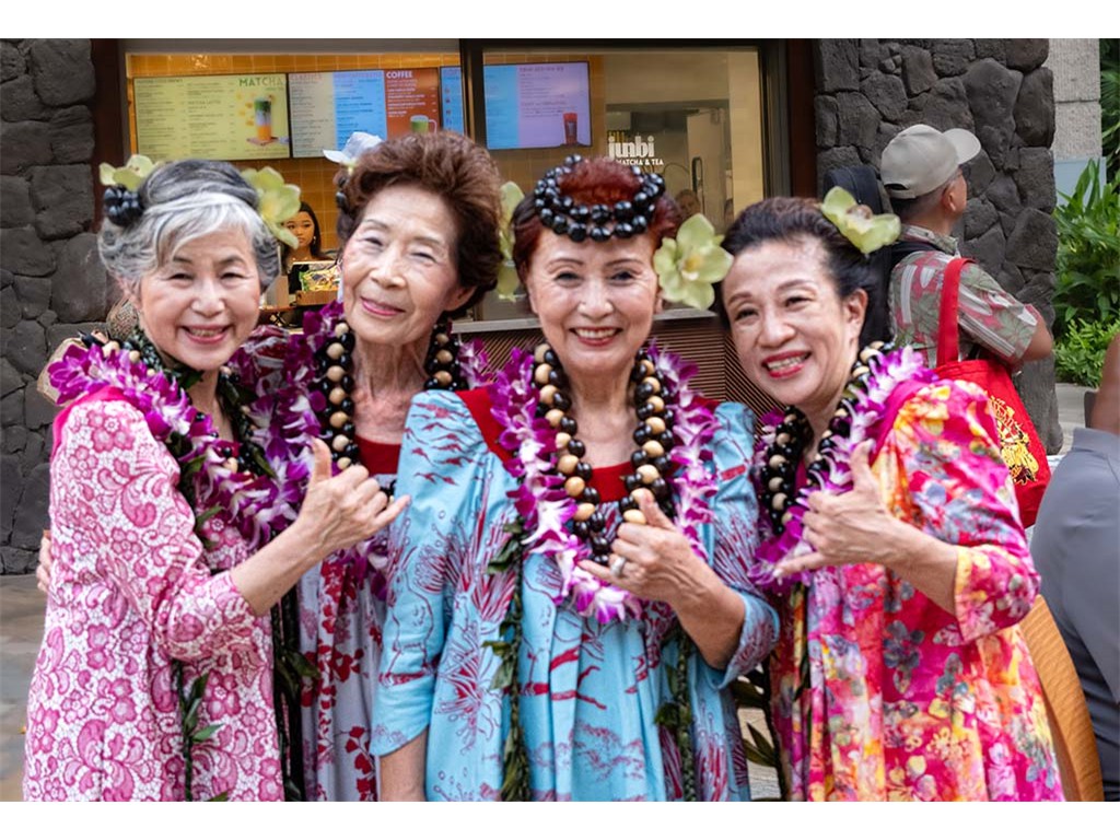 Hula dancers Keiko Azumi, Tomoko Yoda, Kumu Kamaile Sachiko Tanaka, and Akemi Mutou of Ona Ona O Kamaile.