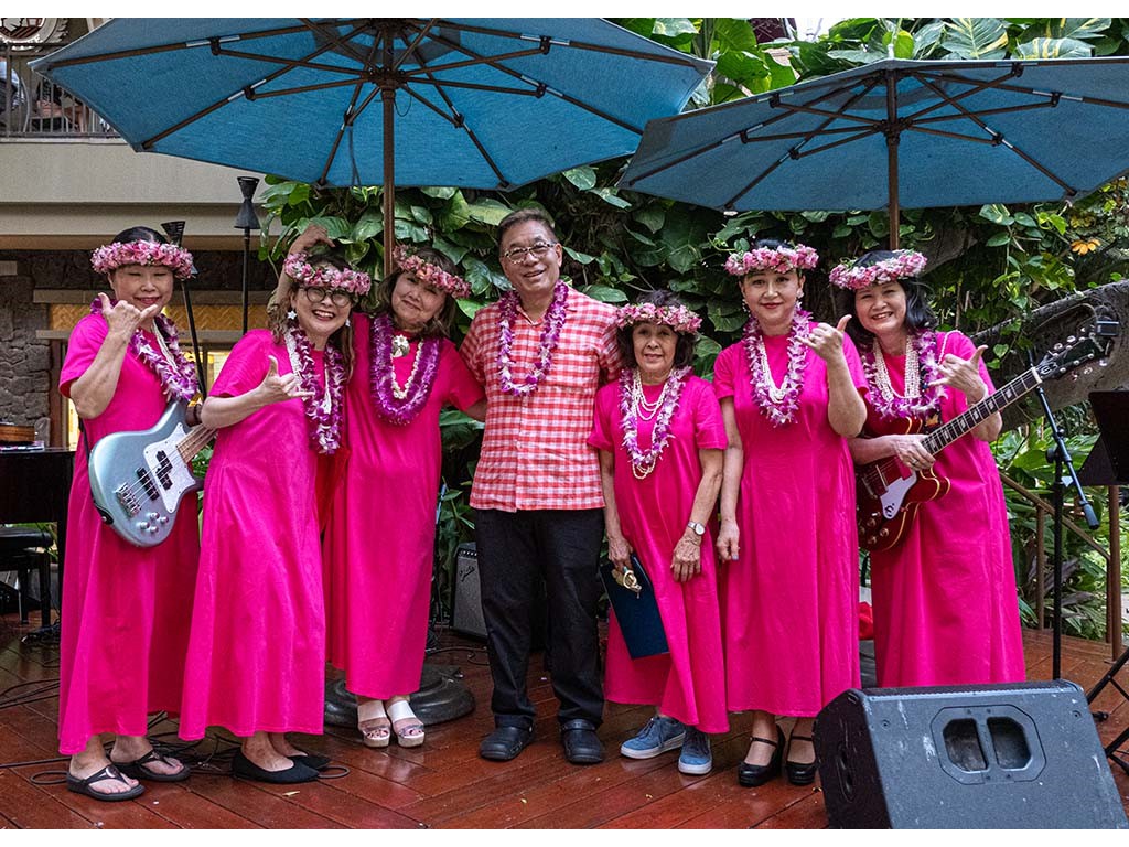 Masami Sato & Makana with dancers from hula halau Ona Ona O Kamaile.