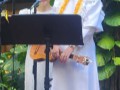 Wednesday's featured steel guitar group was Masami Sato & Makana. The band Makana comprises Masami Sato on Ubass and Vocal, Kazuko Tanaka on Steel guitar, Masako Wakamatsu on Steel guitar, Kazuko Ishii on Guitar, Ayumi Kato on Guitar and Vocal, Yoshiko Konno on Bass, and Michiko Makiuchi on ‘Ukulele and Vocal. Kumu Hula Meleana Manuel from Hawai‘i Island danced hula for Makana.