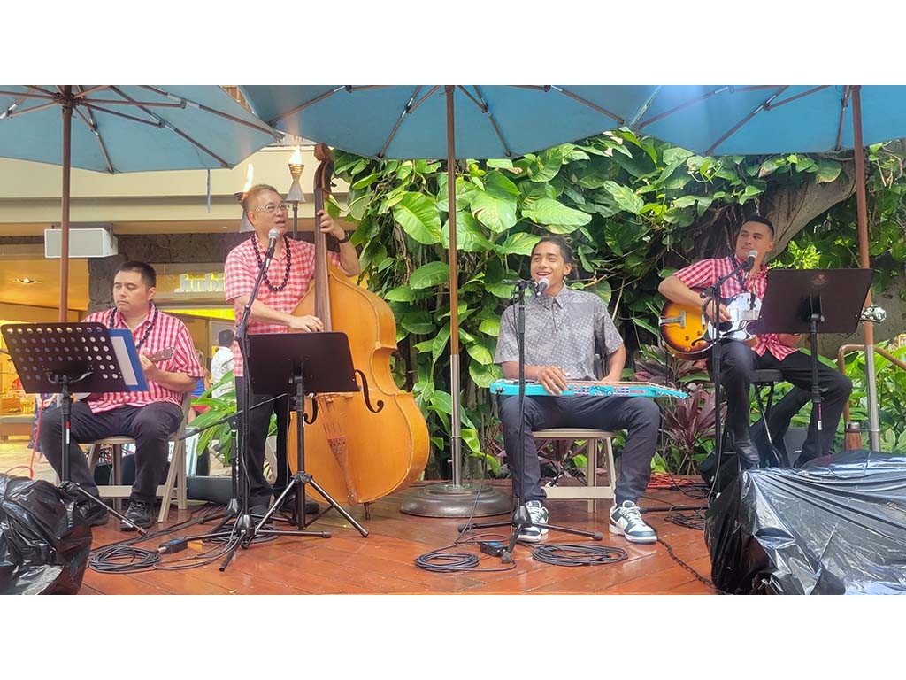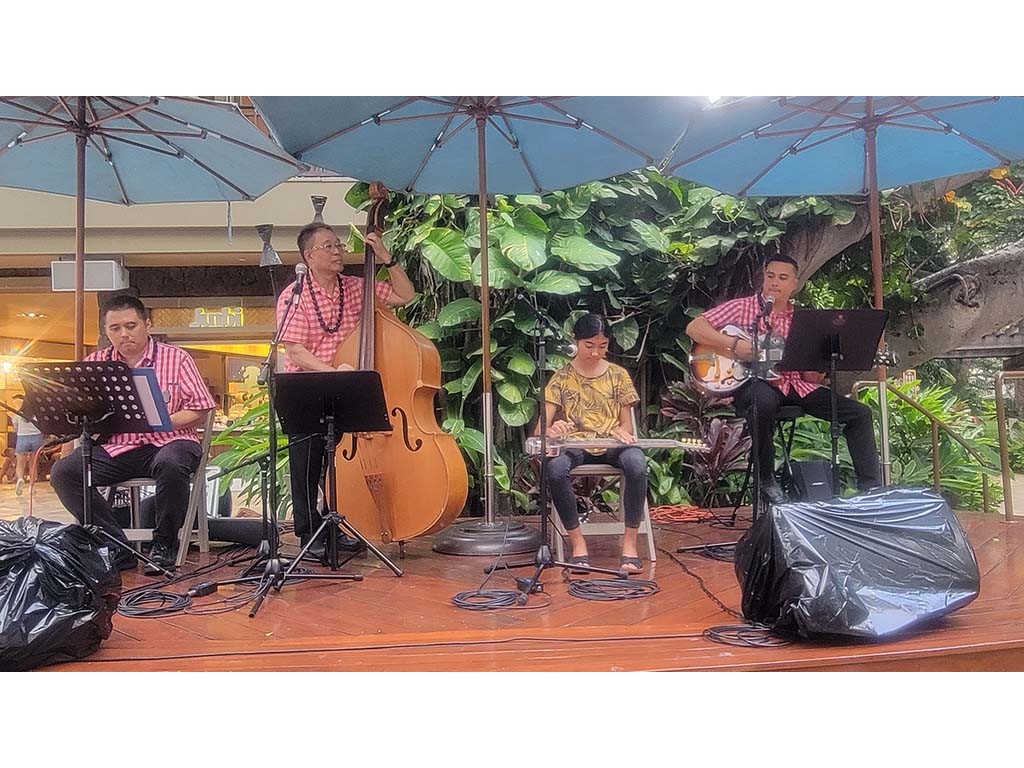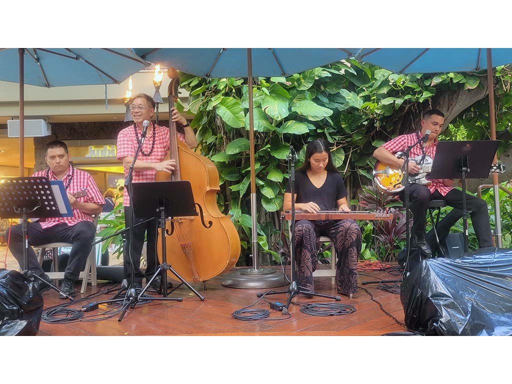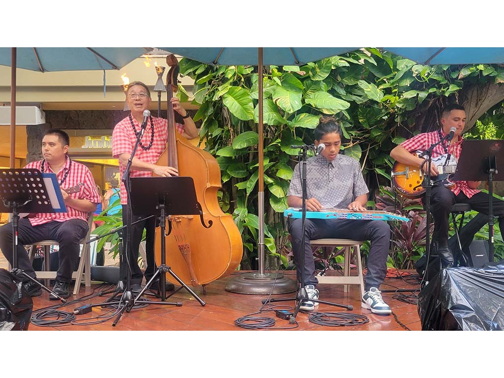 Hiʻipoi Lindsey and Isaac Woodward with Kaipo Lindsey, Alan Akaka, and David Woodward.Back to Gallery: 2025 Waikīkī Steel Guitar Week