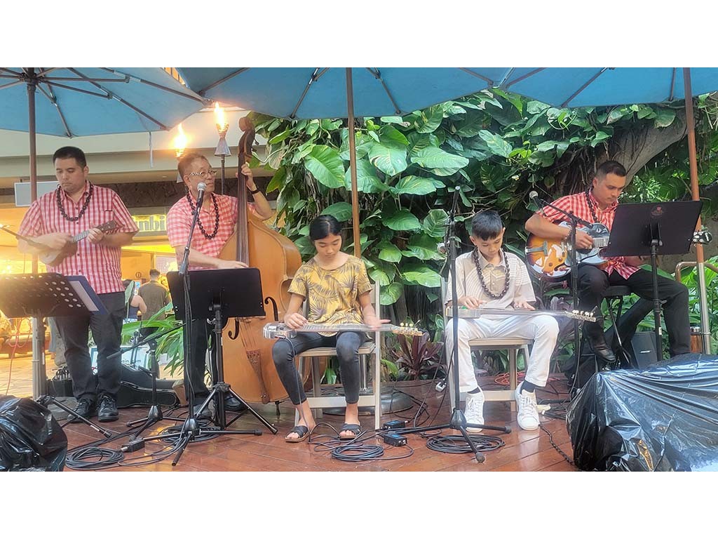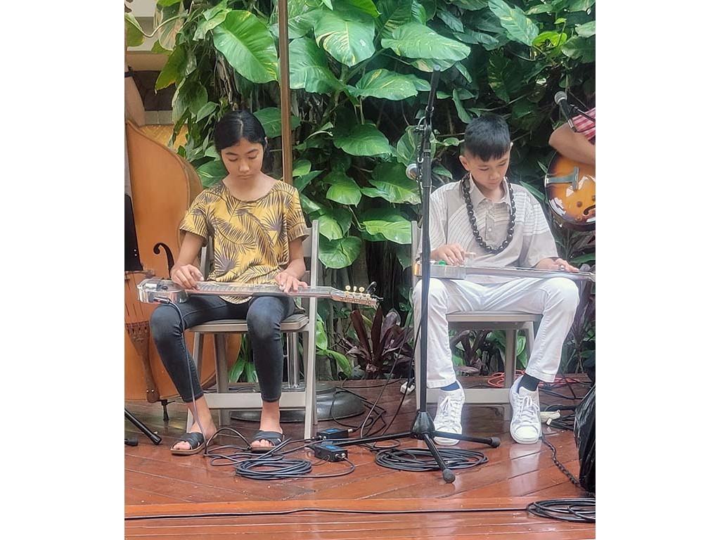 Thursday's nightly concert featured NextGen steel guitists from Ke Kula Mele School of Hawaiian Music. NextGen steel guitarists included Isaac Woodward, Hi‘ipoi Lindsey, Enosa Lyman, Ever Ta‘ala, and Tai Misailidis.