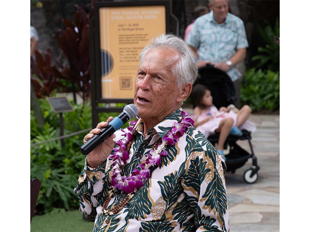 The 15th Annual Waikīkī Steel Guitar Festival was held on Saturday, July 12, 2025. The first segment began at 11:00 AM and featured steel guitarists Steve Cheney, Geronimo "Geri" Valdriz from Maui, Greg Sardinha & Po‘okela, Johnny Crash from Santos (São Paulo) Brazil, Christo Ruppenthal from Madison, Wisconsin, and Kiyoshi "Lion" Kobayashi from Tokyo, Japan. The second segment began at 4:00 PM and featured Masami Sato and Makana from Japan, Bobby Ingano, Mālie Lyman, and Alan Akaka. Emcee was Kimo Kahoano.