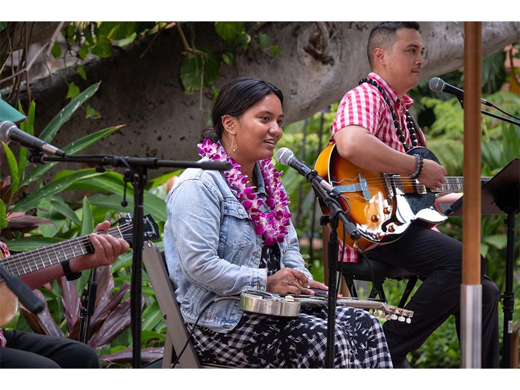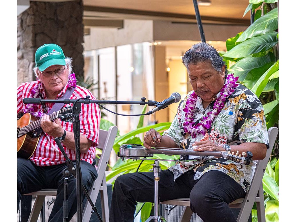 Featured steel guitarist Mālie Lyman with David Woodward.